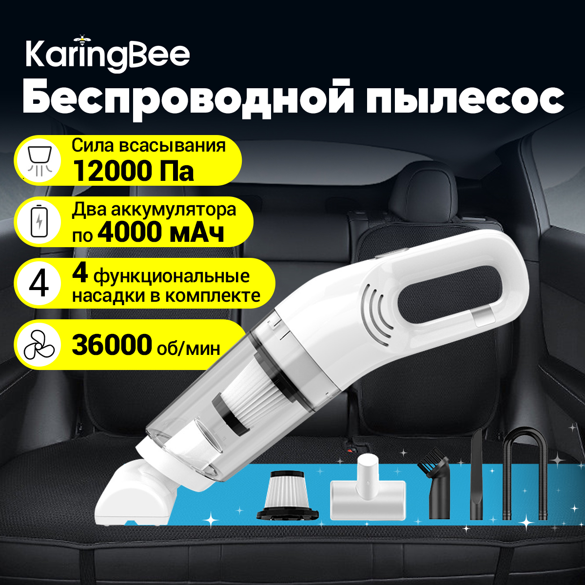 KaringBee Пылесос для автомобиля беспроводной HL-107